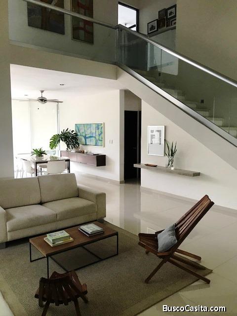 Bonita residencia en una privada en Altabrisa. Cuenta con garaje techado para dos autos, sala a doble altura, comedor muy amplio, terraza, jardín y piscina. En la planta baja hay una habitación con baño completo que puede funcionar como recamara o estudio. Preciosa cocina equipada y meseta de granito, cuarto de servicio y área de lavadero. La planta alta cuenta con 3 cómodas recamaras con baño completo cada una. La casa se entrega con abanicos y 4 aires acondicionados. Terreno de 12 x27.5 m². Construcción 330 m²