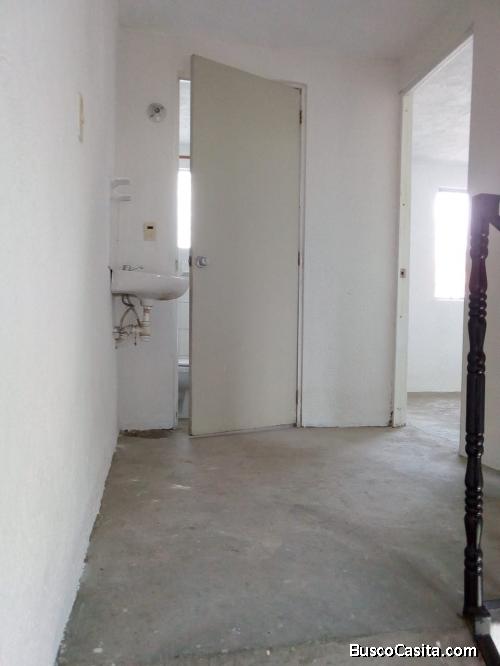 Casa de dos plantas con dos recamaras y un baño completo, cuenta con su área de sala, comedor, tarja en cocina, patio de servicio y estacionamiento para 1 auto. En la segunda planta 2 recamaras y el baño completo.