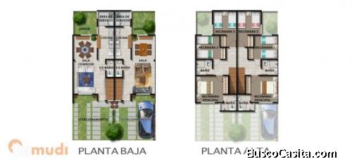 Casas de dos niveles. En la planta baja cuenta con amplia sala comedor, ½ baño de visitas, Funcional cocina, Practica área de servicio, agradable jardín, estacionamiento para 2 autos. Terreno de 77.11 m2, y 95 m2 de construcción. En la Planta Alta cuenta con la Recamara Principal con su baño completo, 2 Recamaras secundarias con otro baño completo.