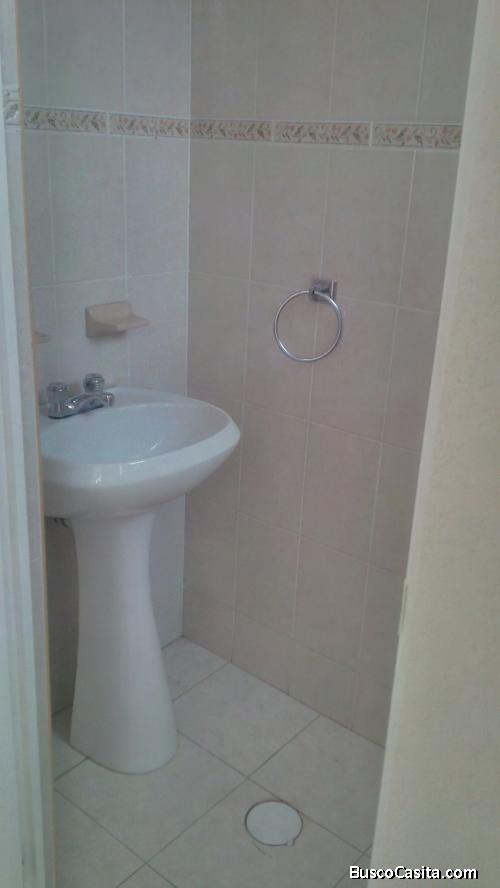 Planta baja: Sala-comedor cocina integral, medio baño, patio de servicio garage para 2 autos con piso de cerámica.