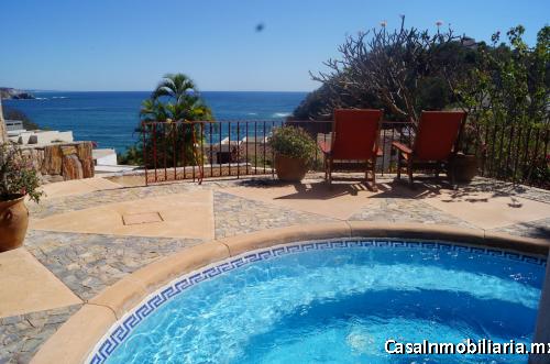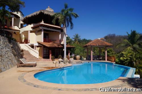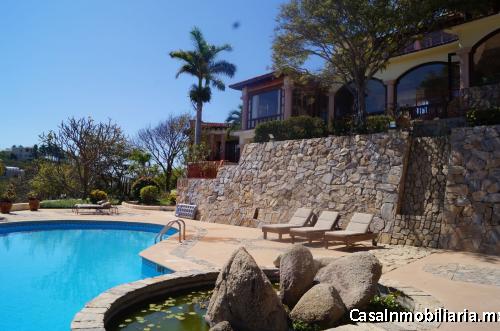 Increíble residencia, ideal para una familia grande o para manejarla como Bed & Breakfast, ubicada en una de las mejores zonas de Huatulco con seguridad a la entrada. La casa cuenta con amplios espacios en tres niveles y tiene una espectacular vista al mar. Tiene 9 recámaras (una de ellas es una suite con pequeña piscina), 10 baños completos y 2 medios baños, AC, cocina, sala, comedor, cuarto de TV, lavandería, cuarto de servicio, 2 patios, alberca, área con asador, Palapa y estacionamiento para 4 autos. Amueblada. Cerca de la playa el Tejoncito.