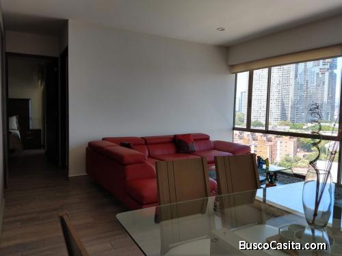 El departamento cuenta con 83m2, amplios espacios en sala, comedor. Tiene cocina integral y área de servicios. 2 recámaras con clóset y la principal con baño completo. Adicional tendrás otro baño completo. Está totalmente amueblado, no te preocuparás por nada. Incluye 1 lugar de estacionamiento.