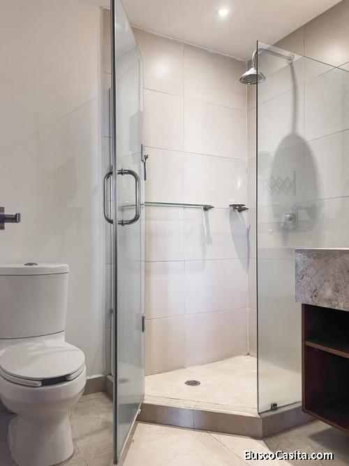 2 baños completos con muebles de mármol y canceles de vidrio templado