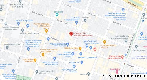 Ubicado en Wagner #102, Col. Peralvillo, Alcaldía Cuauhtémoc, CDMX; entre Calz de los Misterios Y Juventino Rosas, a 3 minutos del Mercado Beethoven, a 2 minutos de Bodega Aurrera Express Peralvillo y a solo 6 minutos de Plaza Misterios.