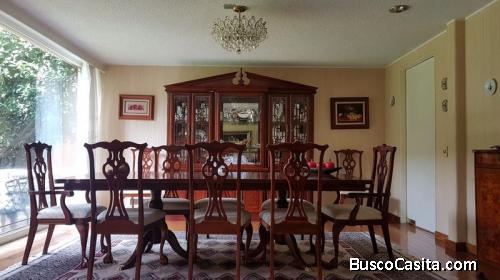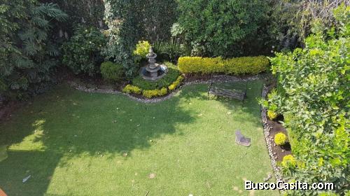 Casa sola muy espaciosa, re-modelada hace 10 años,pequeño jardín en entrada, recibidor muy amplio con pisos de mármol, alacenas y closet de visitas con puertas escondidas de madera,, medio baño de visitas sala y comedor con piso de duela y ventanales con vista al jardín (80m) ante-comedor con alacena para vajillas, cocina integral , alacena y horno empotrado con alacena extra, 3 recámaras con baño y vestidor, family room, estudio, estudio extra que puede convertirse en otra recámara, cuarto de servicio y cuarto de planchado, medio baño extra, estacionamiento para 4 autos con puertas automáticas, sistema de vigilancia, calefacción, cisterna