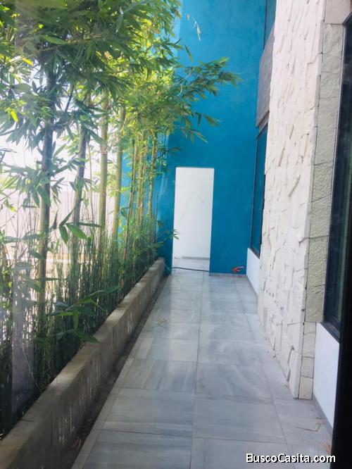 Casa de dos niveles, cuatro recámaras, estudio, bodega, tres baños, Terrazas, garage para cuatro automóviles, área de lavado, sala, comedor, cocina equipada, jardín, alberca, acabados de primera.