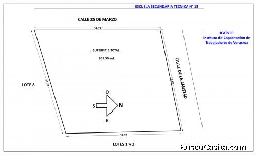 TERRENO ZONA URBANA ESCOLAR DIRECCIÓN: CALLE DE LA AMISTAD ESQ. CALLE 25 DE MARZO, COL. PEMEX, CP. 95180 DIMENSIONES: se anexa croquis, SUPERFICIE: 951.50 m2 CON BARDA PERIMETRAL Y REJA DE ACCESO SERVICIOS: AGUA POTABLE, DRENAJE SANITARIO, LUZ ELÉCTRICA, TELÉFONO, INTERNET, ALUMBRADO PUBLICO FÁCIL ACCESO A CARRETERA FEDERAL (a 100 m) TRAMO: VERACRUZ – SAYULA DE ALEMÁN, A 98 km DE VERACRUZ LUGARES DE REFERENCIA: FRENTE A ESCUELA SECUNDARIA TÉCNICA N° 15, Y CERCA DE: ICATVER (Instituto de Capacitación al Trabajador de Veracruz), TERMINAL DE ALMACENAMIENTO Y DISTRIBUCIÓN DE PEMEX, ESTACIÓN DE BOMBEROS, HOSPITAL GENERAL.