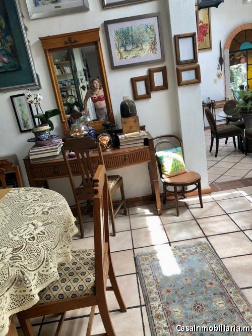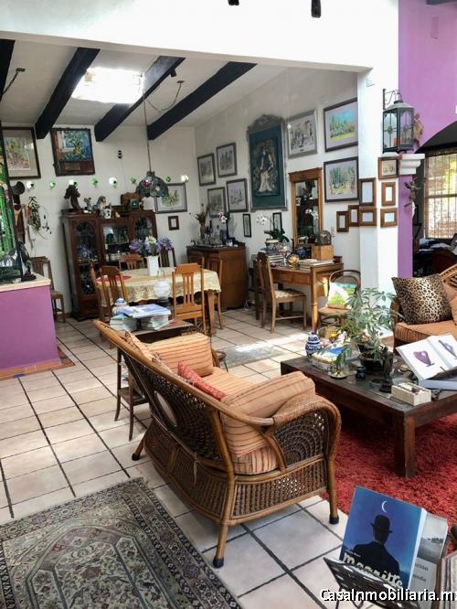 Casa con dos recámaras, sala, comedor, cocina, un baño y estudio con biblioteca
