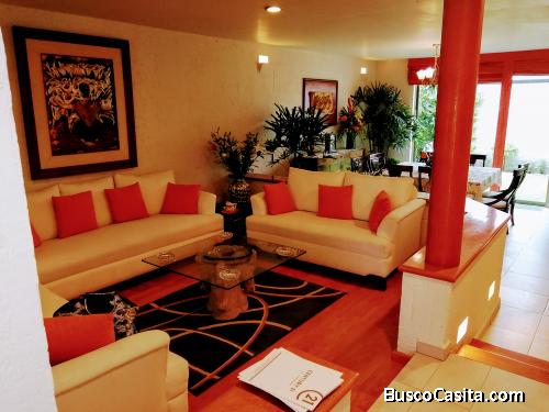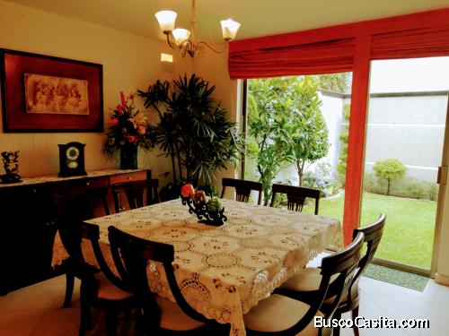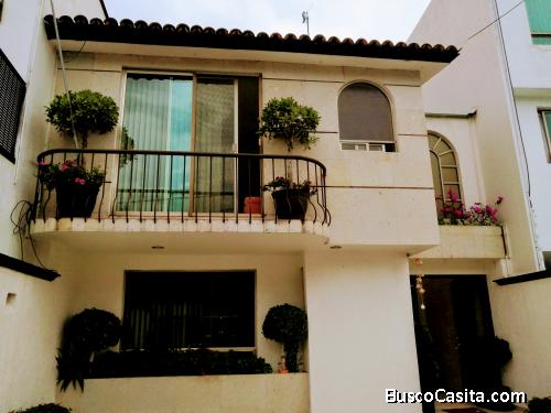 LINDA CASA EN TRES NIVELES, CON PORTÓN ELÉCTRICO PARA DOS AUTOS, EN LA PLANTA BAJA HALL CON DOBLE ALTURA, MEDIO BAÑO DE VISITAS CON VENTILACIÓN NATURAL, AMPLIA OFICINA CON VENTANAL, CAVA DEBAJO DE LAS ESCALERAS, SALA COMEDOR SEPARADA CON LUCES INDIRECTAS EN LA PARTE SUPERIOR E INFERIOR, EL COMEDOR, COCINA Y DESAYUNADOR CON UNA AGRADABLE VISTA AL JARDÍN . COCINA INTEGRAL CON LUCES INDIRECTAS ASÍ COMO AMPLIA ALACENA Y ESPACIO PARA DESAYUNADOR. ESCALERAS DE MADERA, EN EL PRIMER PISO TRES RECÁMARAS CADA UNA CON BAÑO Y VESTIDOR, LA PRINCIPAL CON BALCÓN Y JACUZZI, ASÍ COMO CLÓSET PARA BLANCOS Y PIAMONTE EN LA PARED. LOS BAÑOS CON MÁRMOL, CANCELERÍA DE ALUMINIO Y VIDRIO TEMPLADO, Y EN EL ÚLTIMO PISO, CUARTO DE SERVICIO CON BAÑO COMPLETO, ÁREA DE LAVADO TECHADA Y DE FORMA INDEPENDIENTE ROOF GARDEN CON ASADOR Y BODEGA MÓVIL. LA CASA CUENTA CON LUCES INNDIRECTAS, PISOS CERÁMICOS, PORCELANATO Y CANCELERÍA DE ALUMINIO, ASÍ COMO CISTERNA PARA 10 MIL LITROS, TANQUE ESTACIONARIO Y BOMBA. LA CALLE ESTA CERRADA CON PORTÓN ELÉCTRICO Y EL FRACCIONAMIENTO CUENTA CON VIGILANCIA LAS 24 HRS.