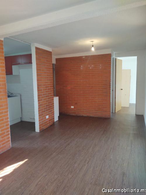Estancia-comedor, cocina integral, área de lavado y tendido, 2 recámaras y 1 baño completo.