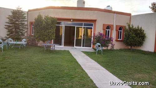 Cuenta con jardín de pasto natural, arboles,, baños, estacionamiento para 10 autos, iluminación, cocina con gas estacionario, cisterna, escenario para grupos musicales, mini bodega, área de asador, parrilla de carbón.