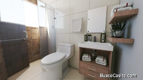 2 baños completos con muros de porcelanato de alto brillo mismo material usado en