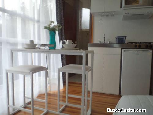Los cuartos se encuentran equipados con una cocineta la cual tiene refrigerador, microondas, utensilios de cocina (cubiertos, vasos, platos, etc.) y un pequeño comedor; tambien contiene una cama matrimonial con la ropa de cama, closet, planca, secadora y el baño completo.