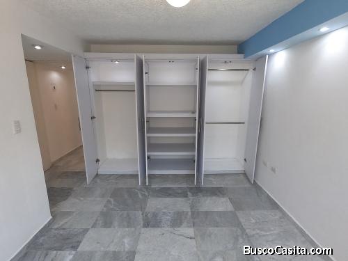 Tiene un área de 60 m2, cuenta con 1 recamara, cocina integral con parrilla de gas, campana y extractor, sala-comedor en la misma área, baño completo, 2 Mini Split y boiler.