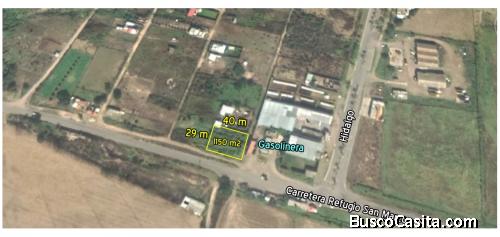 Muy buen Terreno con topografía plana, con 40 metros de frente sobre carretera bien ubicado a un costado de Gasolinera, con plusvalía en crecimiento, Cuenta con luz, agua, predio con escrituras y libre de adeudos o gravamen. Superficie: 1,1150 m2. (40 m x 30 m aprox)
