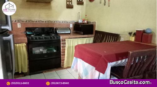 Cuenta con : Sala, Comedor, Cocina, 5 recámaras, un Baño Completo, un Medio Baño, Bodega, Árboles Frutales de Limón y Pera, Gas Estacionario, Boiler, Lavadero, Cisterna (3x3), tinaco, un Pequeño Jardín y estacionamiento para 3 carros.
